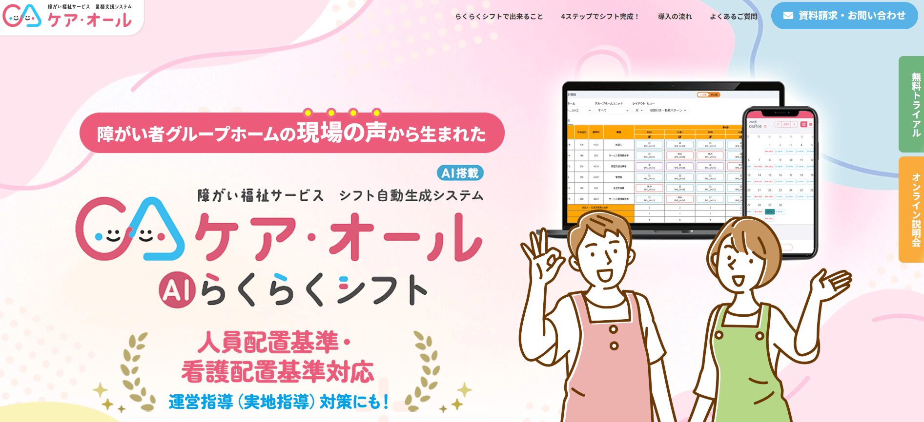 ここでは、ケア・オール(らくらくシフト)の主な特徴について紹介します。